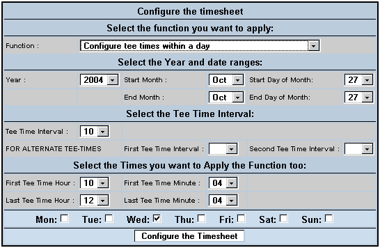 In the example below we're going re-configure the 27-Oct-2004 with the details below: